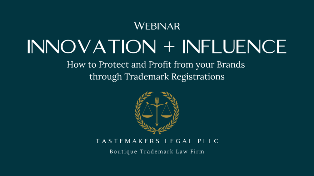 I’m providing access to my webinar “Innovation + Influence: How to Protect and Profit from your Brands through Trademark Registrations."